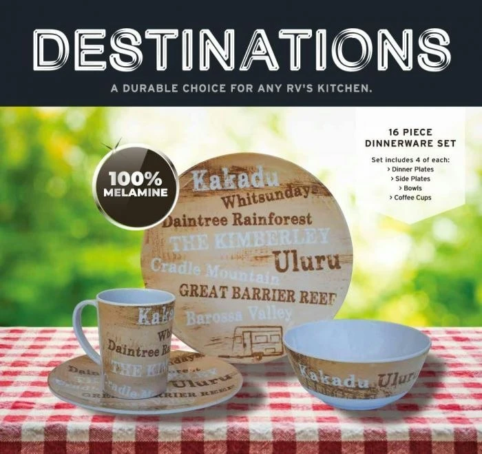 This new 100% melamine dinner set feature a rustic wooden design with some of Australia’s top destinations and are ideal for use in camping, RVs, caravans, and boats! They offer extreme durability and are lightweight though they have a similar feel to porcelain. They are easy to clean and are a great alternative to unfriendly one-use plastic plates and cups!