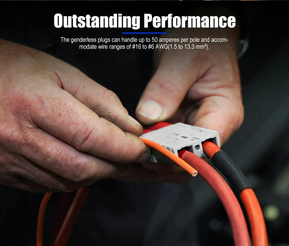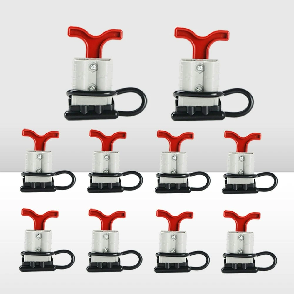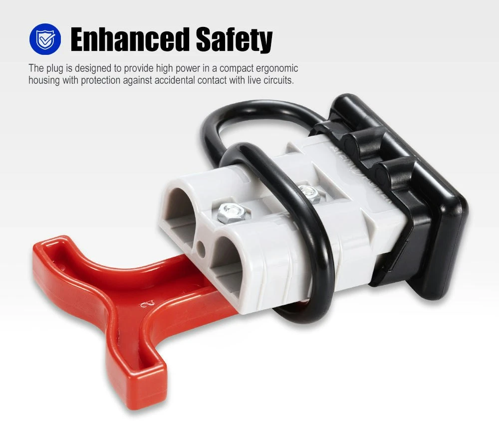 Made of ultra tough polycarbonate housing, this Anderson Style plug is built to beat any harsh conditions, including impact, shock, vibration and scratch, so you can go anywhere with reliable power connection. In addition, these plugs are all weather and element proof with dust caps, which can effectively prevent water, sand and dust from seeping in. All contacts are silver plated for lower resistance and copper terminals capable of handling high currents with minimal loss. As a preferred way for DC power distribution and battery connections, the genderless design allows you to customize highly efficient connections for any DC and solar setup, and ergonomic T handle makes it easier to disconnect FEATURES Ultra Tough Housing: The ATEM POWER Anderson Style plug is made of ultra tough polycarbonate housing to withstand toughest conditions. Versatile Functionality: This plug is ideal for batteries, backup power, automotive/caravan power, telecommunications and data transmission. Premium Terminal & Contact: Low resistance silver plated contacts and copper terminals capable of handling high currents with minimal loss. All Weather Dependability: This Anderson Style plug is dust and waterproof so you can go anywhere reliably. RoHS Compliant: RoHS compliance serves as a guarantee that there is no restricted chemical substances in the plug. Genderless Design: Genderless design allows you to quickly create custom, highly efficient connections for any DC and solar setup. Dust Cap Attached: The dust cap covers will protect the electrical terminals of Anderson plug from dirt and water ingress. Ergonomic T Handle: It permits a firm grip on Anderson plugs, making it easier to connect and disconnect the plugs. SPECIFICATIONS