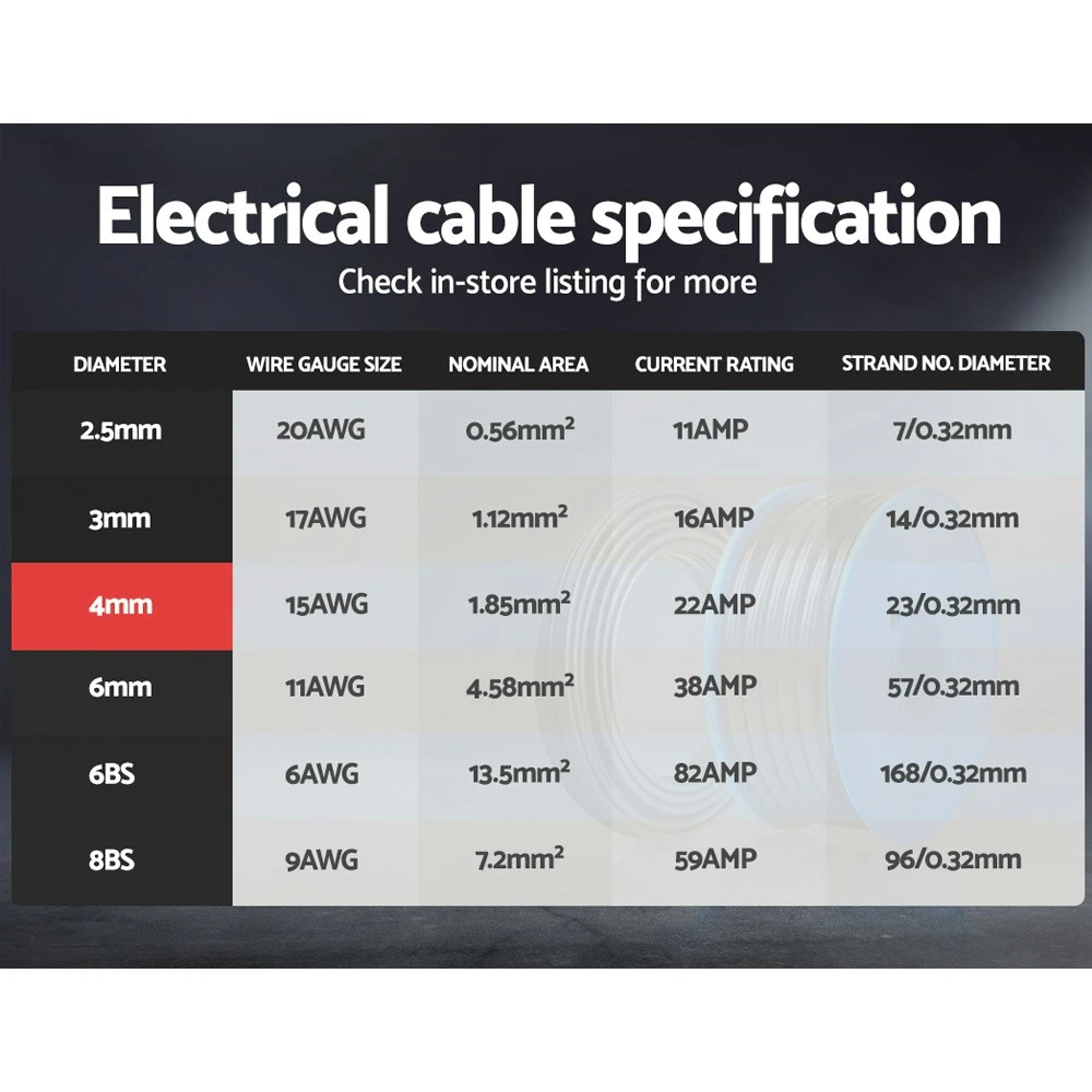 Giantz 4MM 15AWG Electrical Cable 100M Length Twin Core Cables Extension Caravan 450V 2 Sheath
