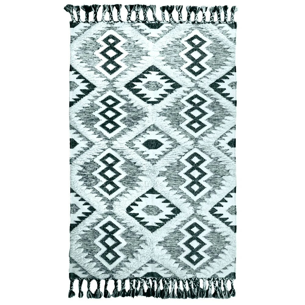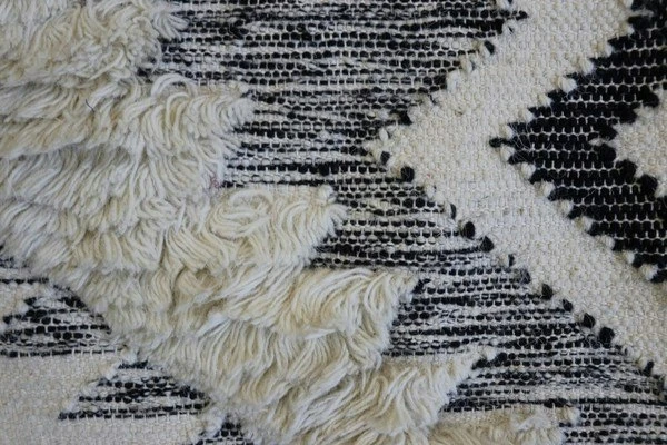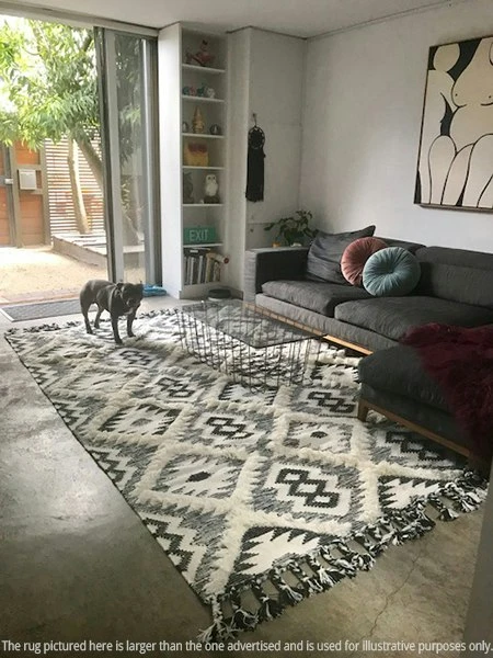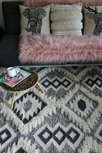 THIS EYE-CATCHING HAND-LOOMED WOOL FLOOR RUG DURRIE COMES IN RICH BLACK AND WHITE TONES, IDEAL TO MATCH WITH ANY DECOR TREND.