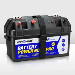 DESCRIPTION Do not mistake this ATEM POWER battery box for a battery due to its sleek and compact construction. Made of sturdy ABS housing and ideal for 4x4s and small boats, this battery box, which is suitable for batteries with dimensions up to 39.3cm*18.3cm*21.5cm, is built to protect your battery from dust, shock, impact, corrosion, UV and other chemical solvents.