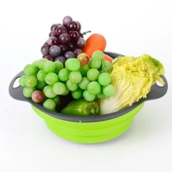 BR Round Draining Basket Collapsible Silicone Kitchen Strainer Colander Folding Filter