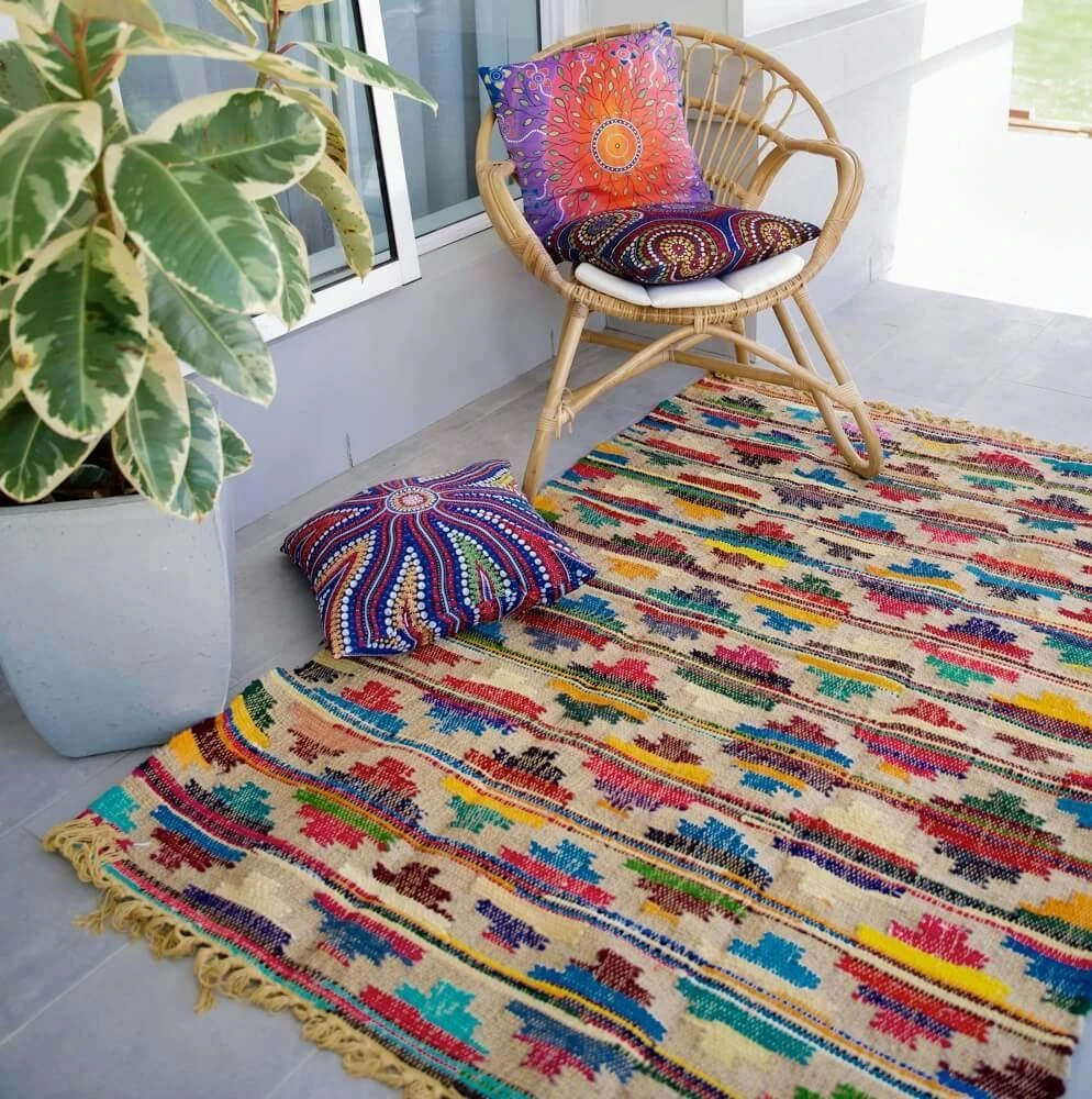 Choosing a floor covering for your living space can be a hard decision, as it will likely be the most used room in your home. Our range of affordable recycled cotton rugs definitely make a room, and they do it well. The geometric design in bright colours creates a bold statement and adds life to any contemporary home interior.