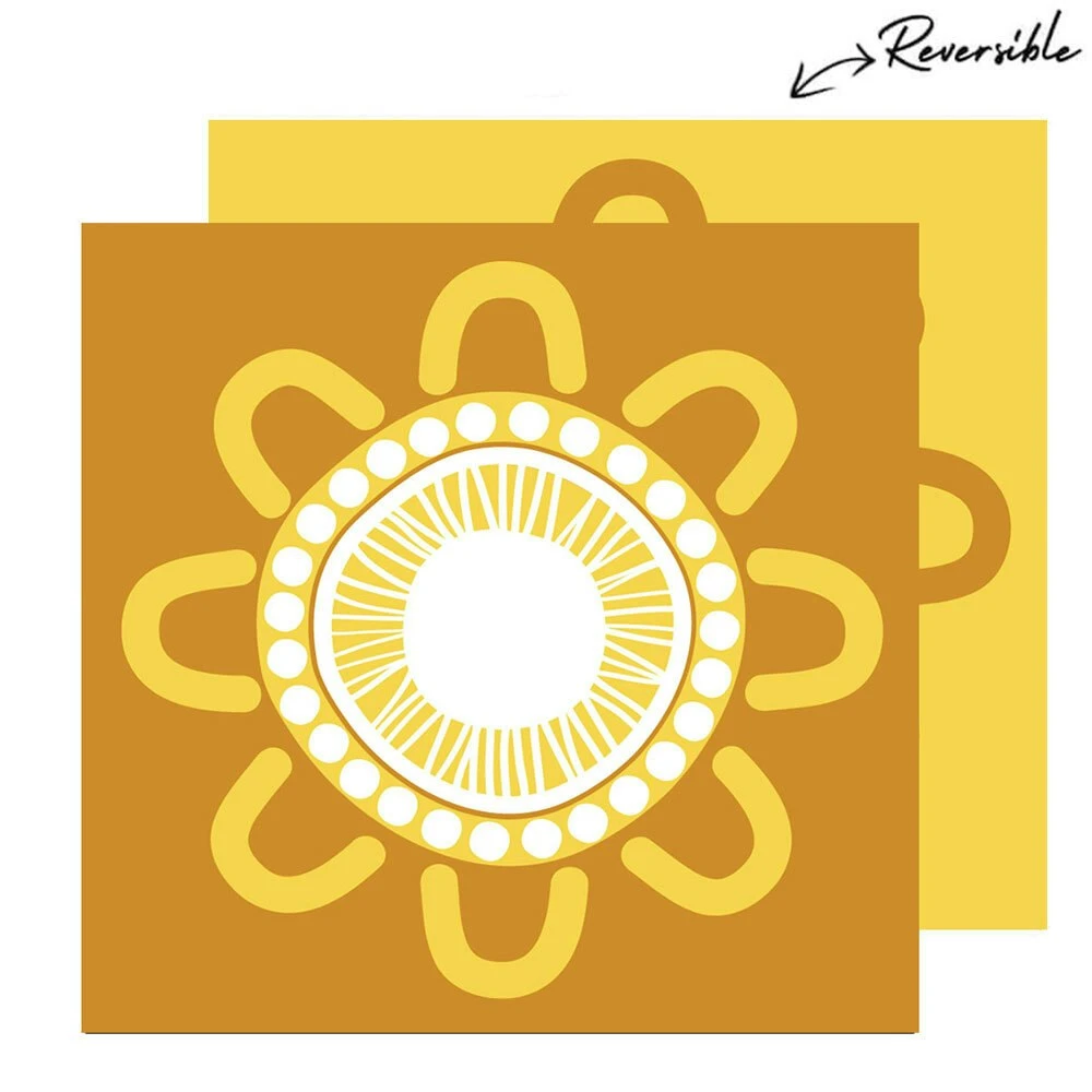 The ‘Come Celebrate’ mat in the ‘Earth’ colourway was designed by respected Australian Aboriginal artist De Greer Yindimincarlie, of the Wiradjuri Nation in central New South Wales, and her mats designs each have their own story…