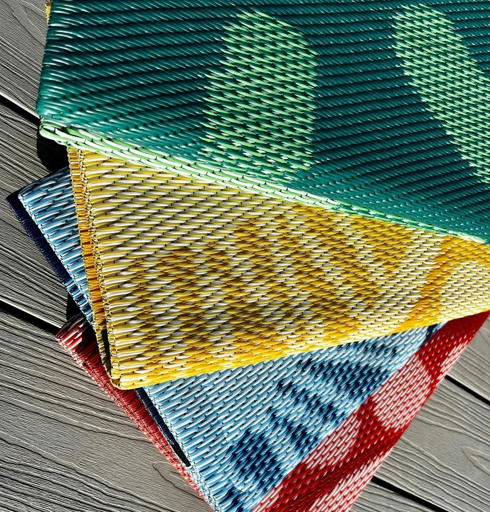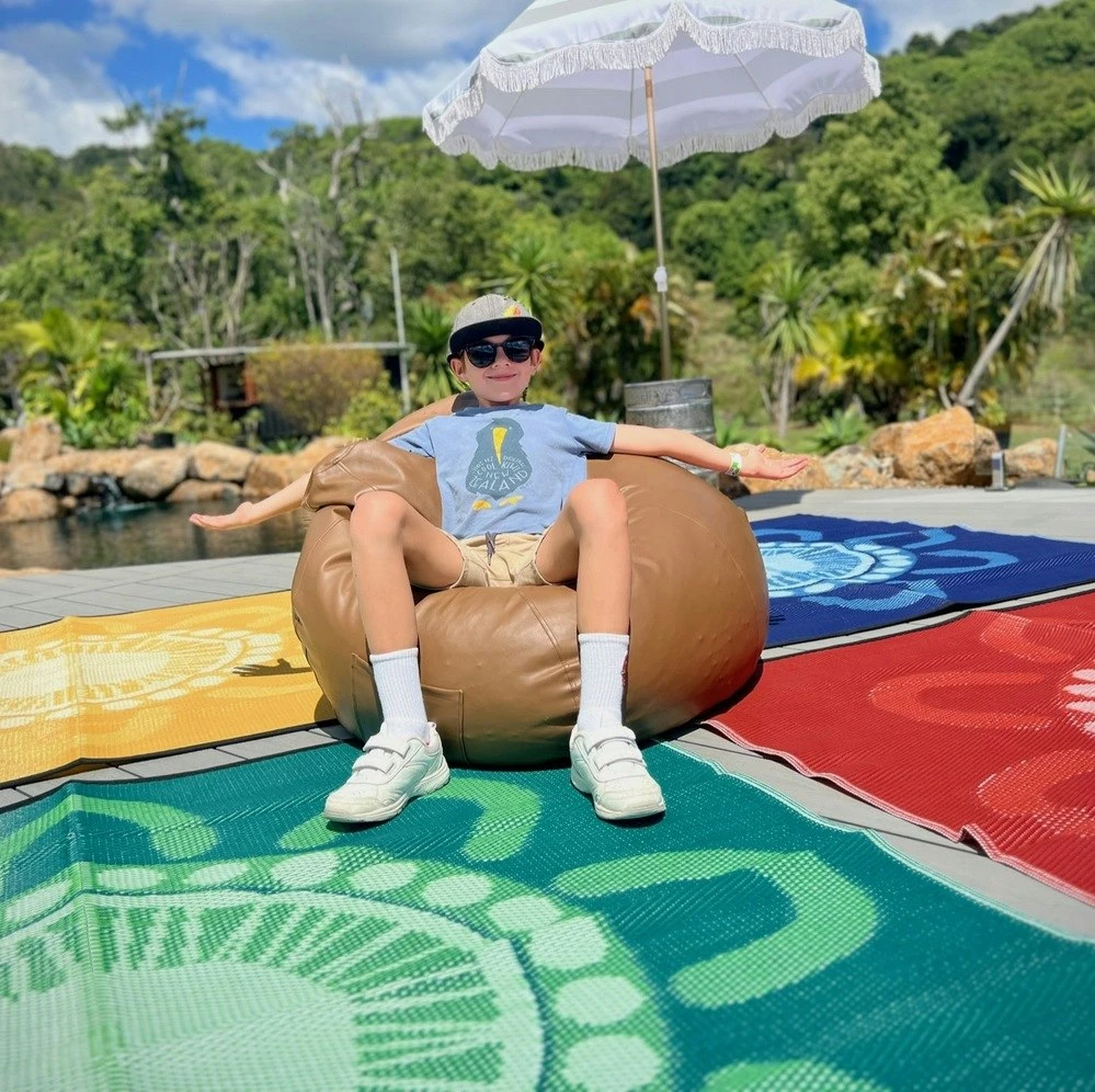 Like all our recycled outdoor mats, it is made from innovative, tightly woven recycled plastic. Although soft to walk or sit on, it is also hard-wearing and super easy to clean; Simply give it a shake to remove loose dirt or sand, or it can be hosed down for muckier uses! Read more here about how easy our mats are to clean. As one of our more compact mat sizes, ‘Come Celebrate’ is lightweight for folding & carrying, so it’s easily transferable from a quiet reading corner at kindy, to being tucked away in it’s included carry bag for a guided bush picnic!