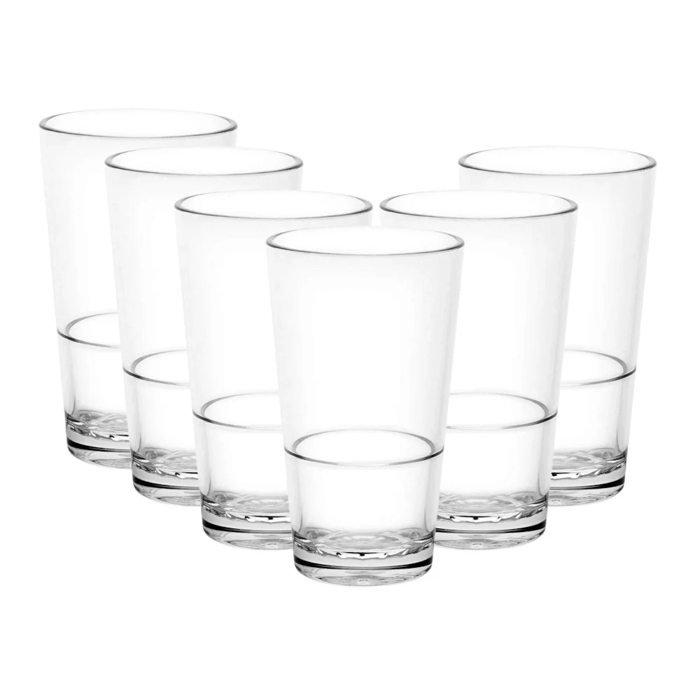 The Unbreakable 285ml Highball Beer Glasses are nucleated and certified. Impress your guests with these professional glasses in your pub or home bar. As they are 100% unbreakable they are guaranteed to stand a rowdy night.They conveniently come as a set of 6 so more can enjoy their quality.