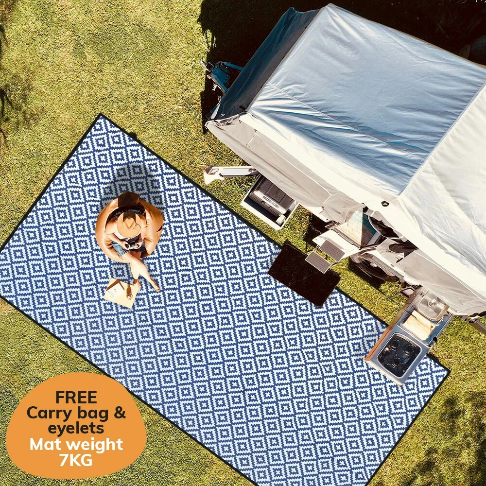 Like all of our recycled plastic camping and caravan mats, the Diamond 3x6m mat is easy to care for, store and transport. Made from recycled plastics, soil and sticky food remains can be hosed off easily.