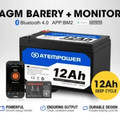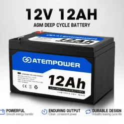 Atem Power 12V 12AH AMP Hour Battery AGM W/ Battery Monitor SLA Deep