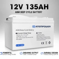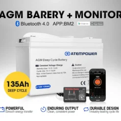 Atem Power 135AH 12V AGM Battery W/ Battery Monitor AMP Lead Acid SLA