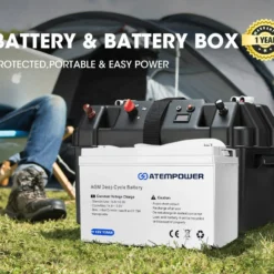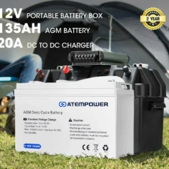 Atem Power 135Ah 12V AGM Deep Cycle Battery + 12V 20A DC To DC Battery Charger + Battery Box