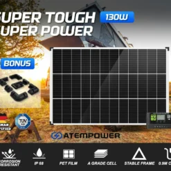 Atem Power Solar Panel Kit 12V 130W Mono Fixed + Solar Mounting Brackets