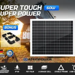 Atem Power 60W 12V Solar Panel Mono Fixed + Solar Mounting Brackets