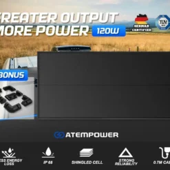 Atem Power 120W 12V Solar Panel Kit Mono Shingled Fixed + Solar Mounting Brackets