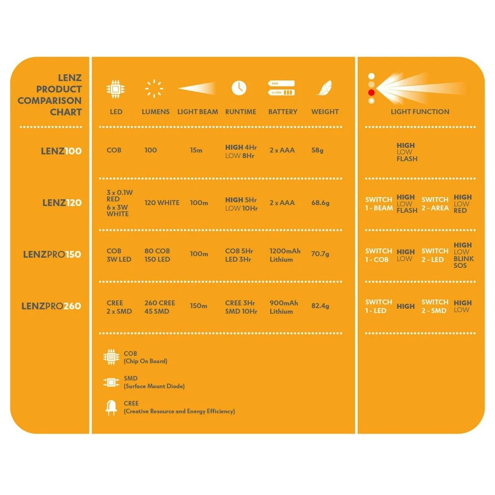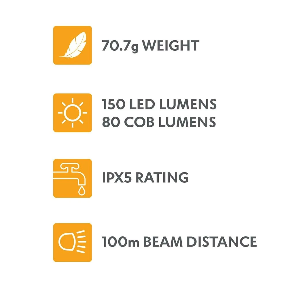 Whether you’re camping or hiking, the LENZPRO 150 from Explore Planet Earth is the simple and affordable option that will light your path outdoors. It has an on/off sensor as well as a distance and area light and high, low and blink/SOS modes. It provides 150 lumens from LED and 80 from COB with a total beam distance of 100m. There’s no need for disposable batteries as this unit comes with a 1200mAh lithium battery and a USB cable for recharging, plus it is IPX4 rated for protection.