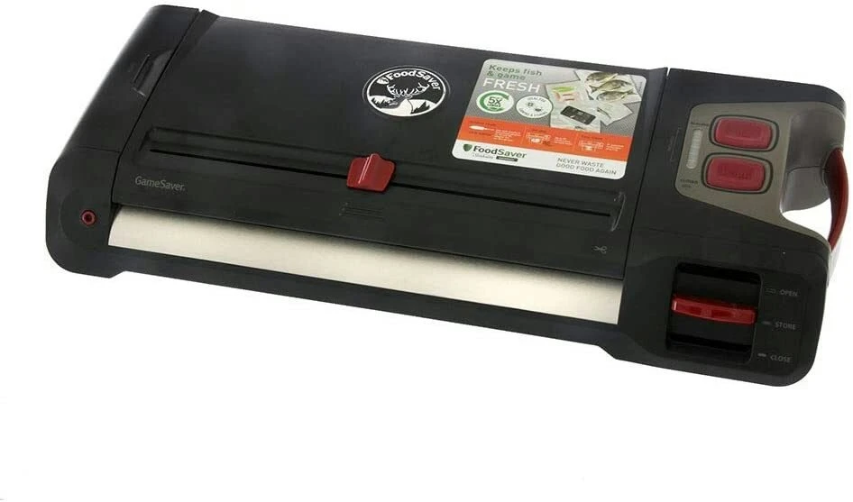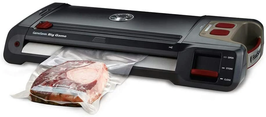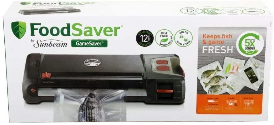 Created with hunters, fishermen, and outdoor enthusiasts in mind, the FoodSaver GameSaver Big Game Vacuum Sealing System features an updated, rugged design with integrated carrying handle and large, rubberized buttons. This new design has intelligent sealing control that lets you do up to 80 consecutive seals or up to 240 pounds of food, and includes a bonus 15-foot 12V power cord, extra-large drip tray and built-in storage compartment. Preserve your prize game and prevent freezer burn.