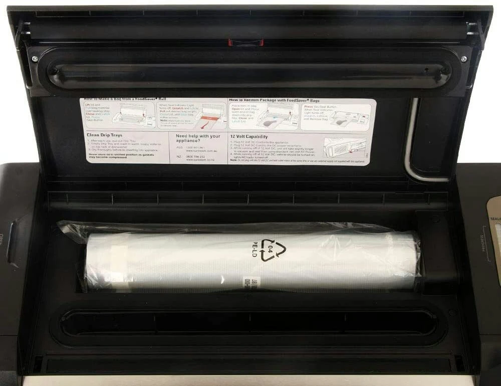 Convenient roll storage and bag cutter on lid allow for custom sized bags replaceable foam gasket ensures a strong vacuum seal