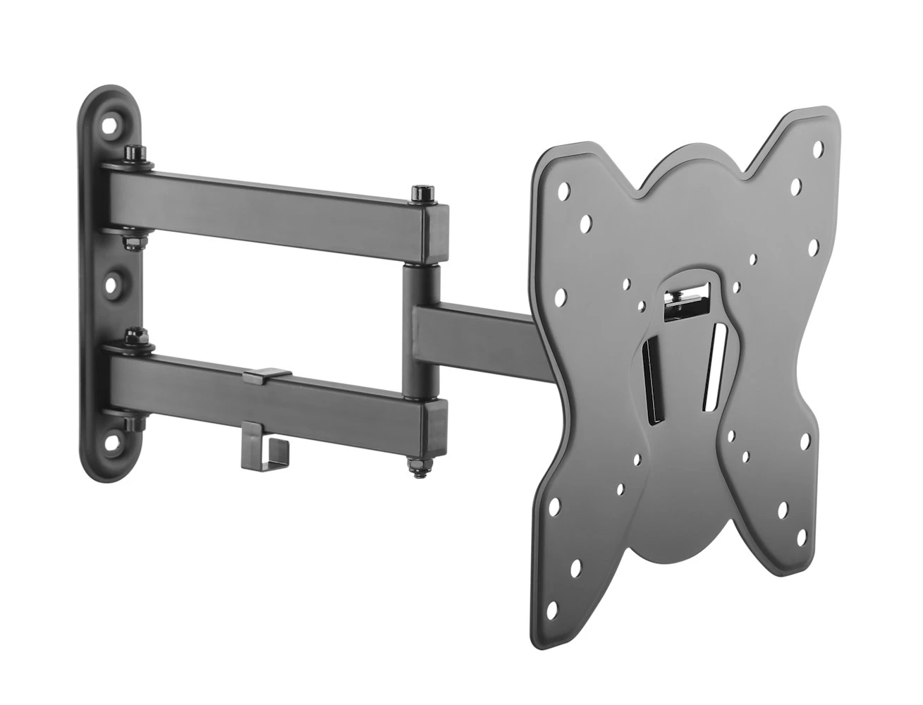 Introducing the Laser Small Full-Motion TV Wall Mount, which combines intelligent design and robust construction. This versatile mount allows you to swivel and tilt your TVs and monitors, offering a wide variety of configurations for different desktop setups and room types.