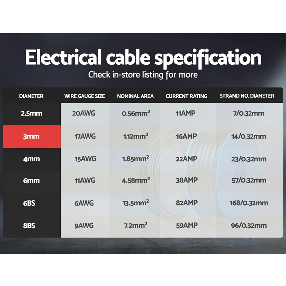 Giantz 3MM 17AWG Electrical Cable 100M Length Twin Core Cables Extension Caravan 450V 2 Sheath