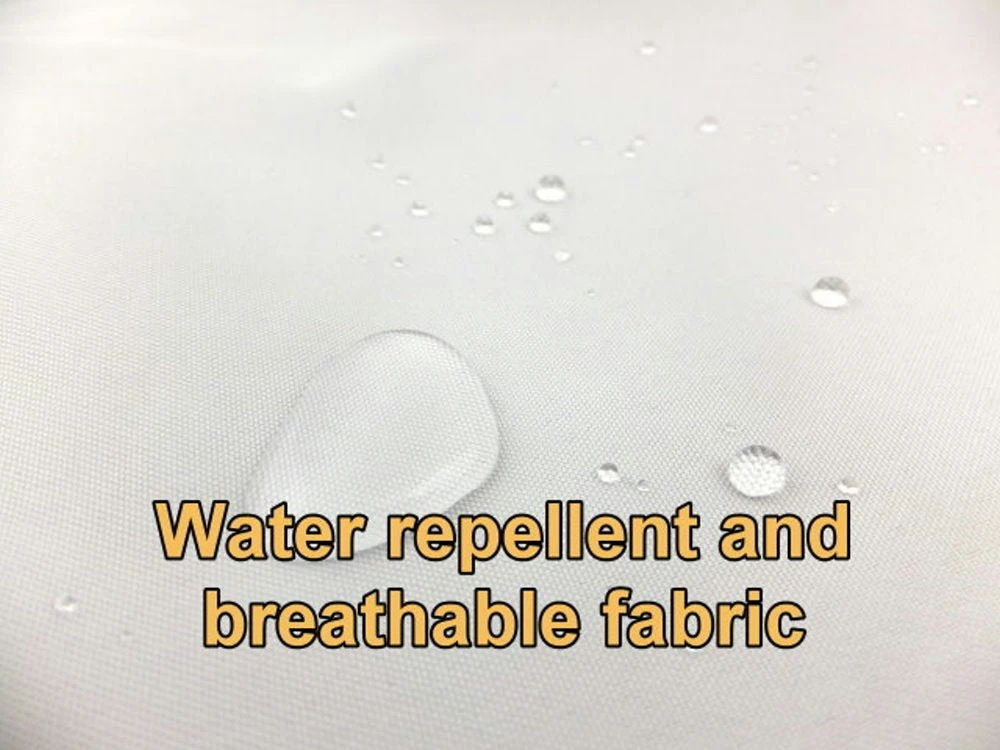 This cover is coated twice with polyurethane on the bottom or downside to insure maximum water resistant. It is also breathable so moisture can escape helping to eliminate mold and mildew. Other great features include an elastic hem with reinforced base, 3 zippers on the door side and nylon securing straps.