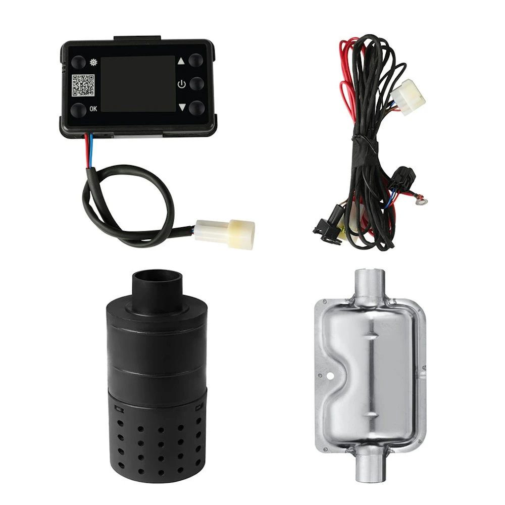 Stay toasty with your new diesel heater. Keep your truck caravan car tent or boat warm. All you need is a 12v power supply and some diesel. Just make sure you exhaust it properly. Stop running your big motor to keep your cabin warm. Just turn your 12v diesel heater on. Save fuel as your diesel heater only keeps you warm rather than running your big engine. Turn your 5kW diesel heater with confidence. All exhaust is vented outside. If your heater overheats it will just shut down. Stop worrying about accidental fires. Control all your heater needs from the smart LCD panel on your diesel air heater. Pick the heater setting and just make sure you got enough diesel to run it all night long. Make sure you have a 12V power supply for your diesel parking heater. A standard car battery carries the right charge. You can install this heater yourself. Just follow the instructions. Key Features 12v/5kw portable diesel air heater Low emissions and low fuel consumption Rapid heating and low noise Extend your engine’s life by just running your diesel heater LCD monitor to control your heater Overheating protection Easy to install Safe to use and long service life Note: Combustion air inlet and exhaust outlet must be outside of vehicle to avoid carbon monoxide poisoning. SPECIFICATION: Material: Plastic steel Rated Voltage: 12v Heater Power: 5kw Fuel type: Diesel only Air Conditioning Type: Heating Fuel Consumption(L/h): 0.16 – 0.64 Switch type: LCD switch Fuel Tank: 10L LCD Display: Digital Thermostat with Temperature Control(2021 Newest) Working Temperature of the Heater: -40°C to 50°C Working Temperature of the Oil pump: -40°C to 40°C Dimension: Heater – 39cm x 14cm x 14cm Tank – 41cm x 32cm x 8cm (L x W x H) Colour: Black Note: Professional installation is highly recommended PACKAGE CONTENT: 1x 12V 5KW Diesel Heater 1x 10L Plastic Tank 1x Mounting Plate 1x T-piece 1x Air Intake pipe 1x Exhaust pipe 1x Fuel Pump 1x Fuel Extractor 1x Fuel Pump Shock Clip 1x Shock Pad 1x Fuel Line 1x Diesel Filter 1x Wiring Harness 1x Digital Thermostat 2x Duct 2x Vent 1x Air Filter 1x Exhaust silencer 1setx Installation Kit 1x Instruction Manual