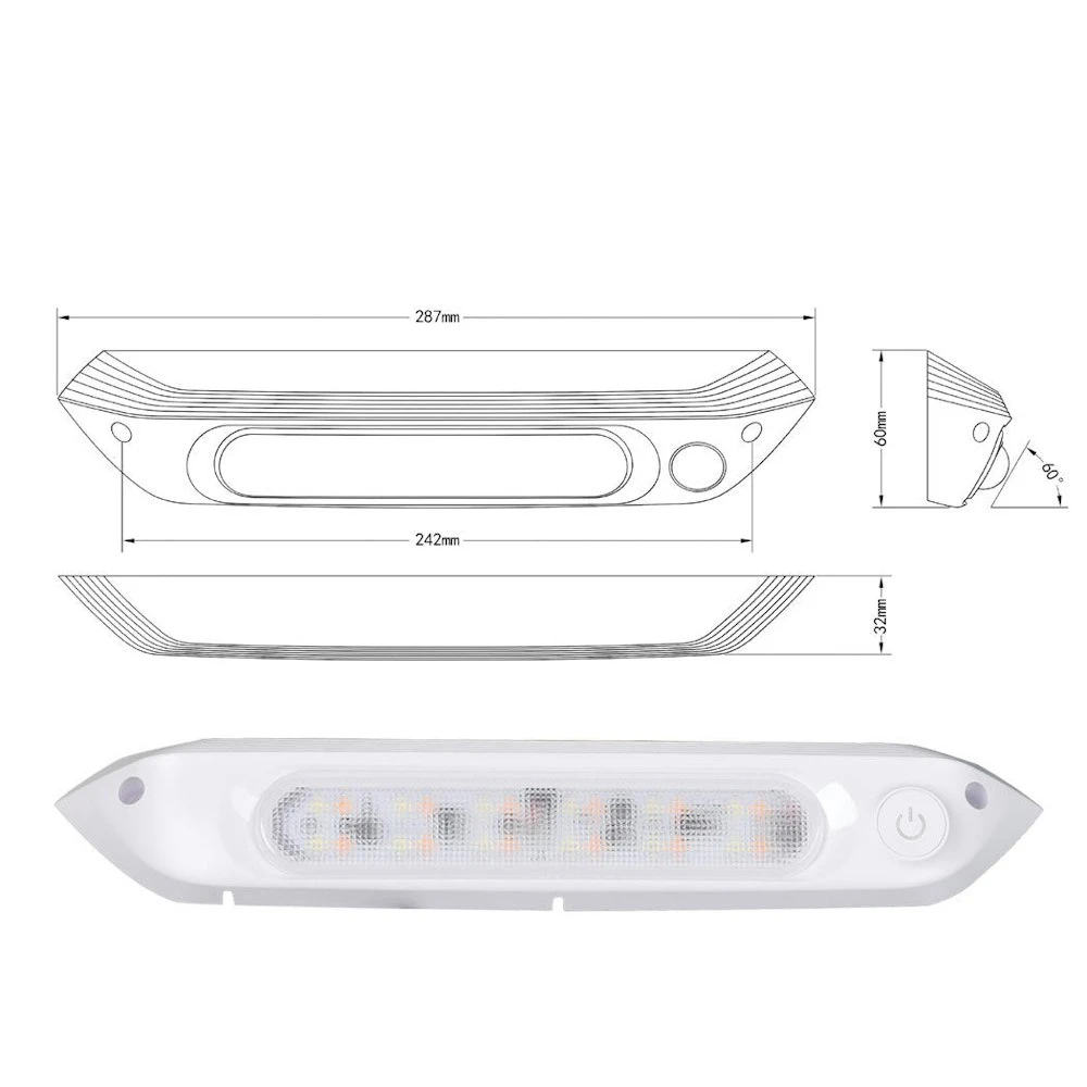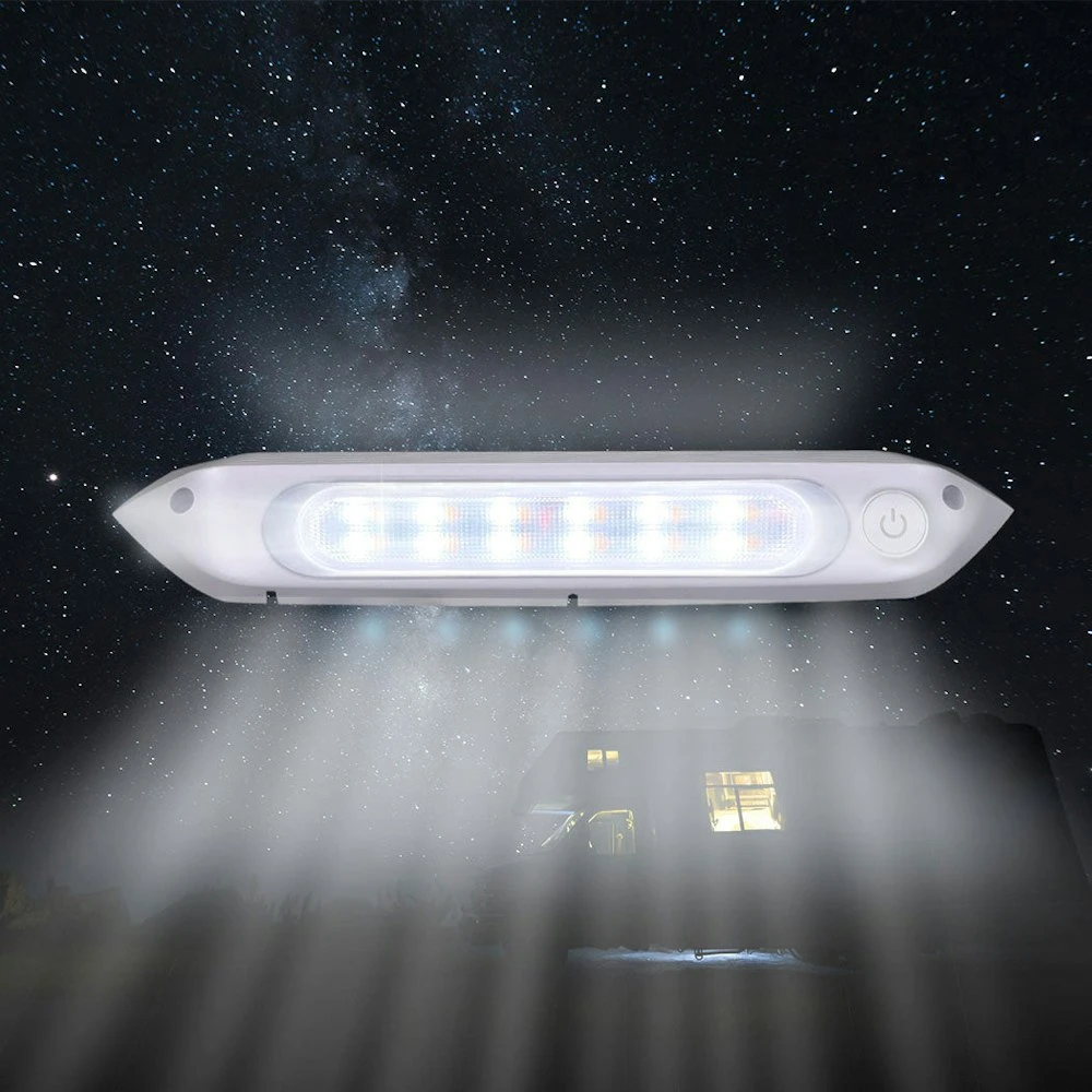 Hook your caravan up to your 4WD for a weekend adventure down the coast. Use your LED awning light to illuminate your bbq as you cook a tasty meal. A well-earned succulent Chinese meal. Need more light inside or outside your caravan? Install your caravan awning light yourself. Stop living in the dark. Move into the light. Even better pick between warm and white lighting. Install your awning light all by yourself. Connect it to the outside of your caravan or RV. Your light is IP67 weatherproof rated. Rain and dust won’t worry you. Do it once and do it properly. A few screws. A few minutes. Your RV LED awning lights are installed. Don’t waste money on a professional do it yourself. Why settle for one? Get all the lights. Start a stage show for all we care. Turn it on. Turn it off. Turn it white. Turn it amber. Your LED awning light has those essential features. Lights shouldn’t always be on and shouldn’t always be off. Really no need to thank us. It is the minimum we could do. Key Features Caravan lighting 12V/24V universal use Dual colour LED lights IP67 waterproof and energy saving Rated up to 50 000 working hours Ultra-tough PC cover Power off memory function Easy to install SPECIFICATION: Material: PC IP rating: IP67 Lumens: 800 Voltage range: 12-28V Beam pattern: 120° Colour temperature: 4000-4500K Number of LEDs: 12 1W white LEDs and 12 0.5W amber LEDs Power watts: 8 watts Driving power: Built-in constant current module LED lifespan: More than 50 000 hours Cable length: 40cm Dimension: 28.7cm x 6cm x 3.2cm (L x W x H) Colour: White PACKAGE CONTENT: 1 x LED Awning Light 1 x Instruction Manual