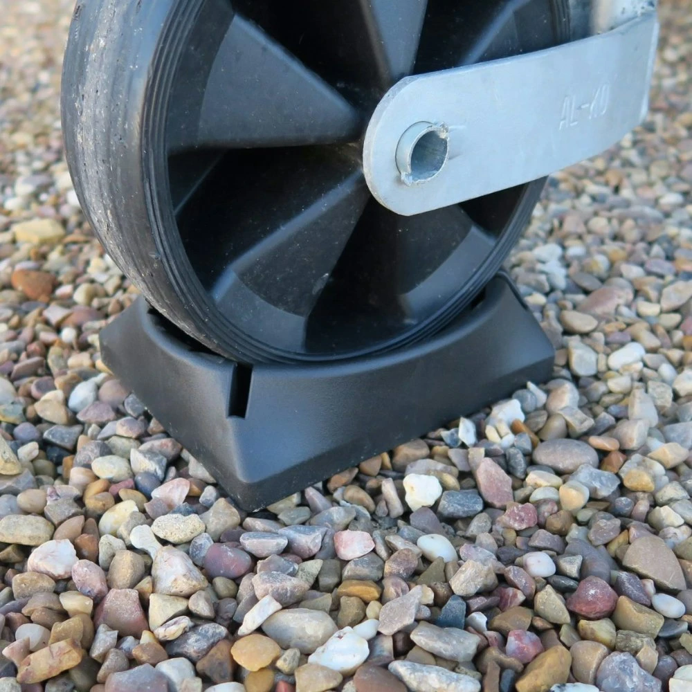 This is a high quality and durable product which is designed to support and protect the jockey wheel and can also be used as an aid to protect against accidental movement of the caravan. Surface area: 17x13cm