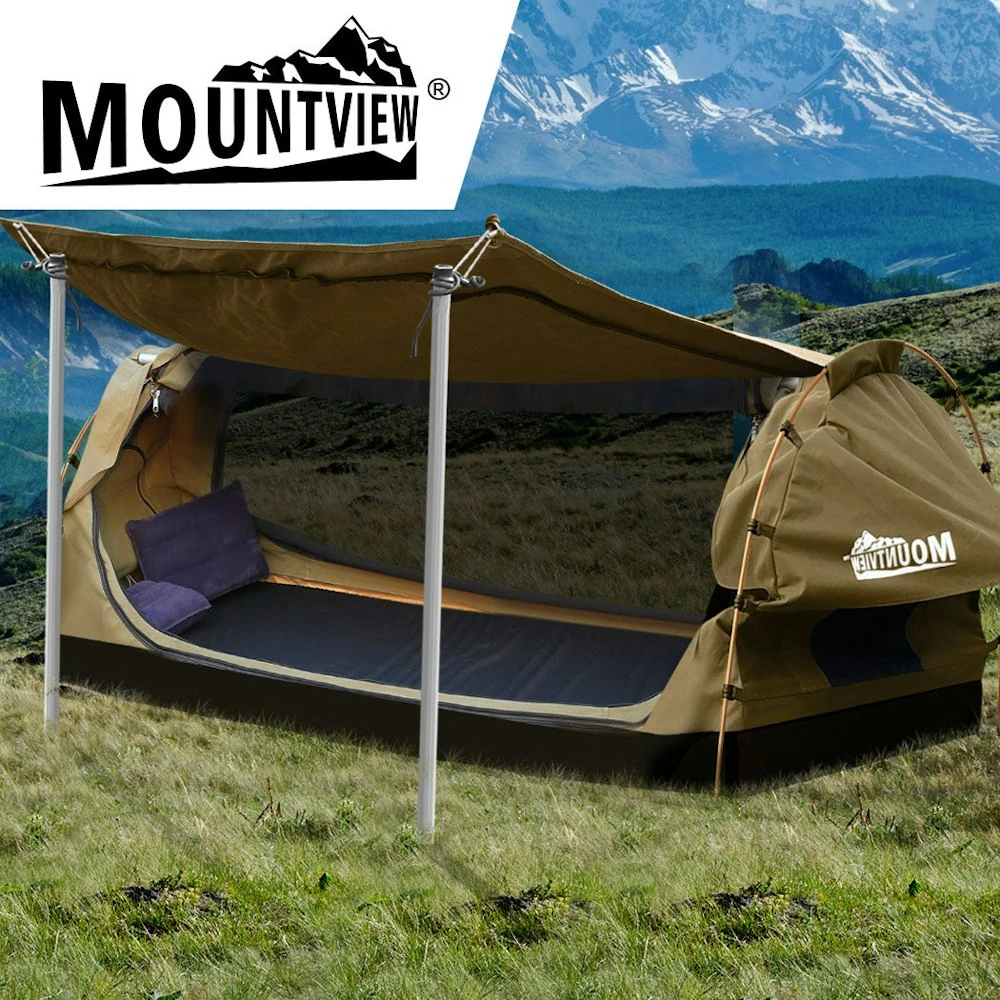 Mountview Double Swag Camping Swags Canvas Dome Tent Free Standing Khaki