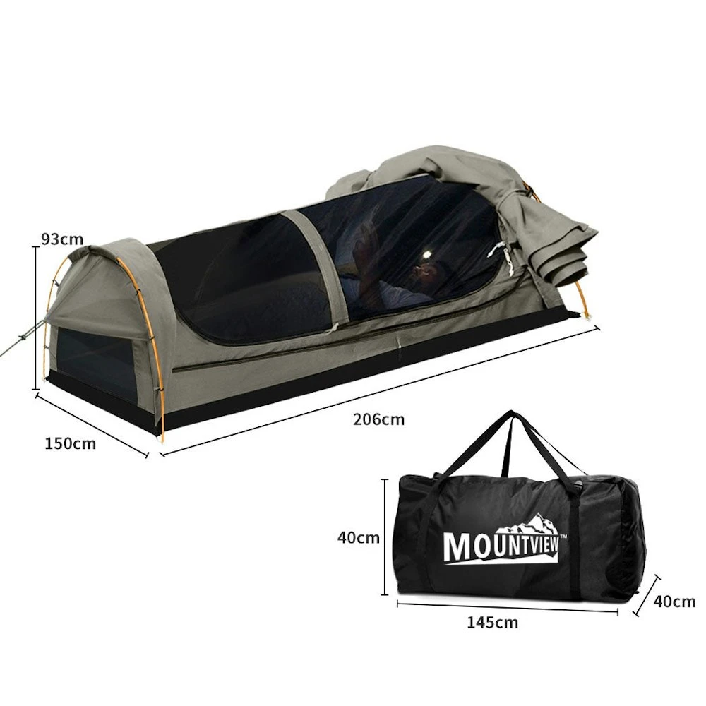 Mountview Double Swag Camping Swags Canvas Dome Tent Hiking Mattress Grey