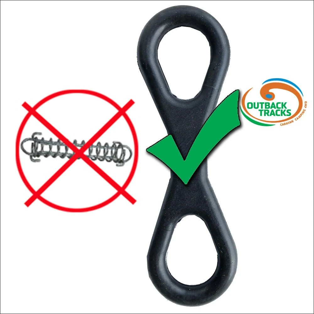 Made from a strong and durable rubber compound, the Safety Spring has been developed as a safer and strong alternative to the dangerous metal camping spring.