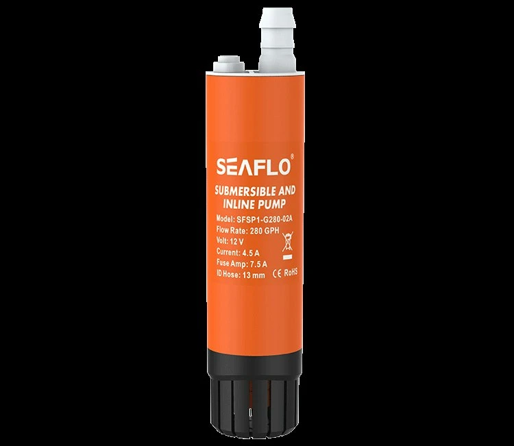 SEAFLO 280gph 12v inline submersible and inline pump is easy to install and carry. Also, the pump is able to pump seawater and diesel. With long life and quiet perform motor, allows it to work in an quiet environment. The food grade material allows it to work with wide range of application
