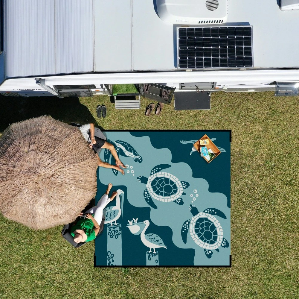 The Sea Shore 3x3m mat is an ideal size for using under your awning, outside your camper trailer or van and creates a safe place for the kids to play. It also helps to keep the sand and dirt out of your campsite, trailer, tent or swag.