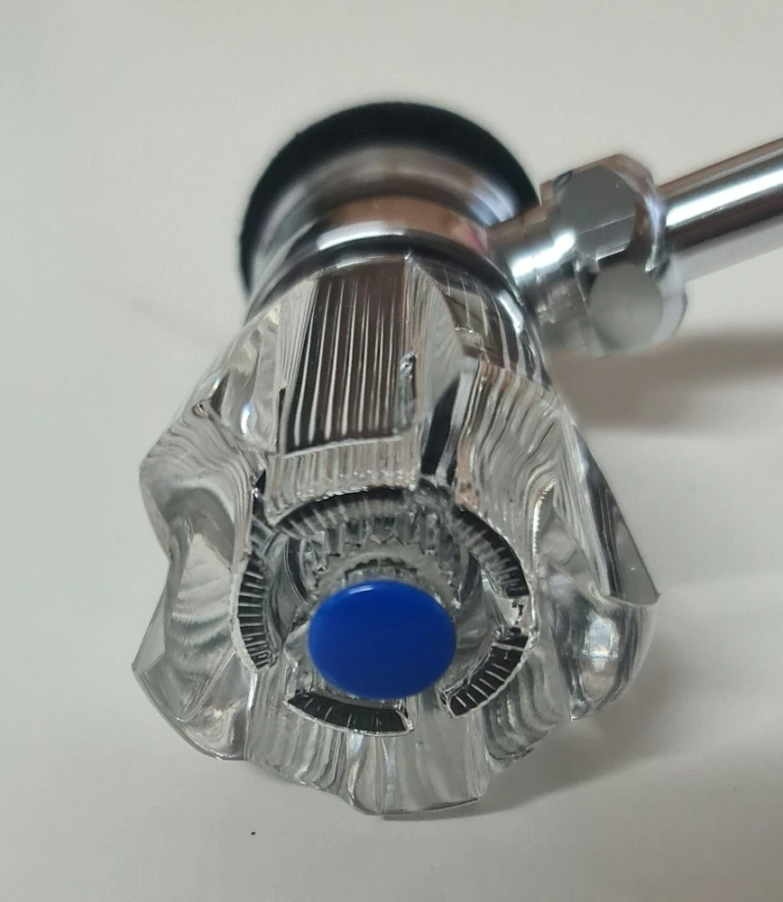 Crystal look handle, left hand fold down faucet, conveniently folds