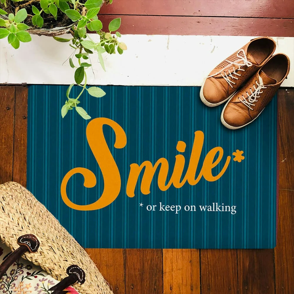 Smile or keep on walking 🙂 These entrance mats add a decorative touch to your home, caravan or campsite
