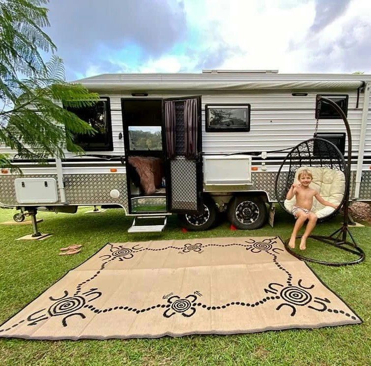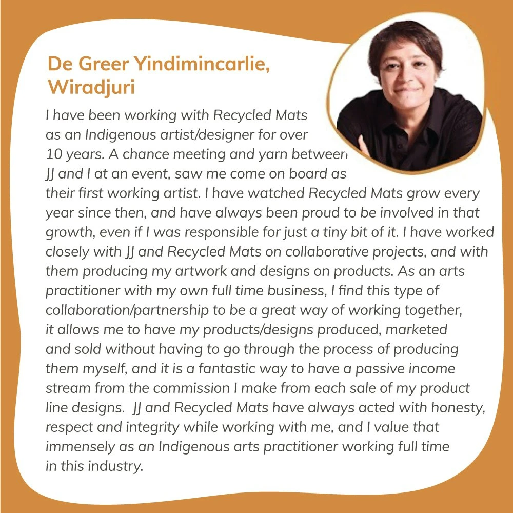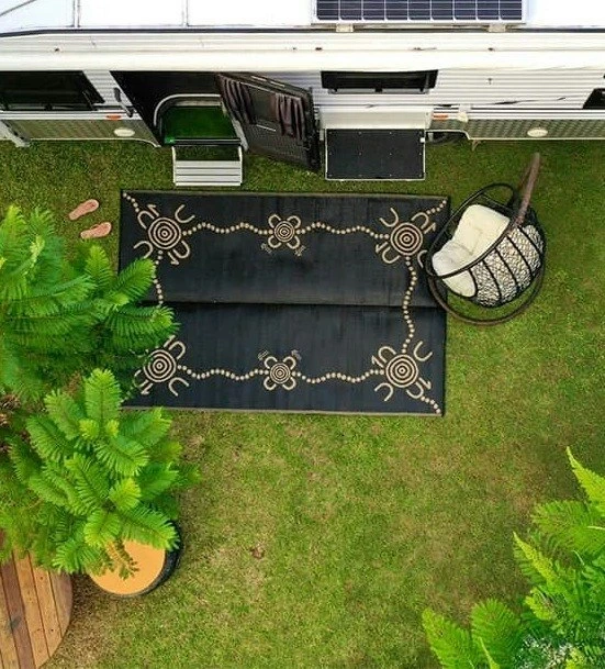Tracks is hard-wearing and easy to clean – wipe away dirt and dust, or hose it off and dry it in the shade. Made from recycled plastics, it is light enough to carry or fold up for transport or storage and being reversible, you get two colour choices for display in the one mat. Choose black one day, fawn the next, whatever suits your decor and mood. This is not only fun but will also extend the life of your mat – it’s like having 2 mats for the price of 1!