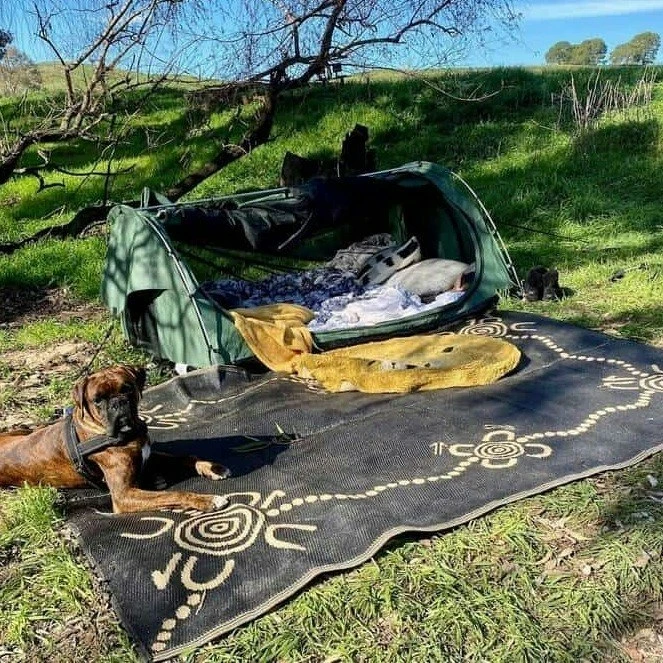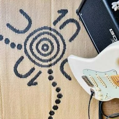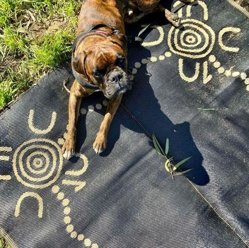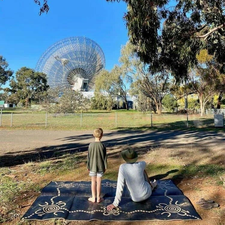 It’s a practical introduction to Indigenous symbolism in art and opens us up to the world of storytelling through pictures. Australian Aboriginal artist De Greer Yindimincarlie, of the Wiradjuri Nation in central New South Wales, designed this mat using a variety of different Aboriginal figures to tell the story of traditional community life. Look closely to see symbols for campsites, warriors, women and kangaroo tracks.