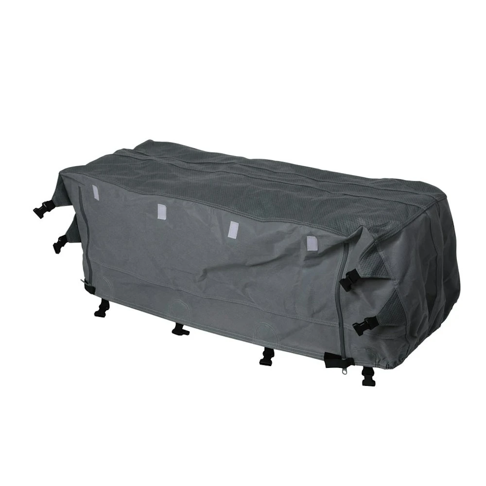 Style your travel villa with our exquisitely crafted Caravan Cover. A luxury cover crafted with textures so fine you can instantly feel the premium and subtle look it elaborates. Featuring 8 tension panel to provide extensive covering to your caravan encases around seamlessly from front to rear. Form a tight grip using its ergonomic adjustable easy to use straps and buckle to latch on impeccably. Equipped with elastic hems for a smoother and effective envelope simply spread over gently adjust and touch up to ensure its stability. If you feel like accessing the caravan once it is fully covered not a problem! Use its Velcro protected panel zipper to easily access from all four sides made practical for greater convenience. Made from high-quality breathable non-woven polypropylene. Structured with advanced ripstop fabric technology for extreme toughness and durability. Double-stitched to form a strong solid bond and softer exterior. Marvelously engineered to provide ultimate protection to your esteem ride. Heavy winds running over? Do not worry its elastic hem ensures the cover stays steady and secure all the time. Great for protection against dust sand and dirt. Designed to actively resist harmful UV rays – extends the life of your vehicle and protects the delicate paint from fading off. In addition to this it also comes equipped with PVC head corners to safeguard your vehicle’s edges. The cover is designed with four reflective strips to indicate the visibility of the caravan even in the dark. If not in use store it up with its provided waterproof storage bag. Very easy to maintain wipe it off with damp cloth for a clean and tidy surface. Flex it set it wrap it all-round certainty embedded in one. Key Features Four side easy access New ripstop fabric technology 4-Layer non-woven polypropylene 100% Breathable Weatherproof withstand all climates 8 Front and rear tension panels 4 Reflective strips Elastic hem Adjustable straps and buckles Special PVC inner protection Double stitched seams Easy to wash Free storage bag SPECIFICATION: Material: Non-woven polypropylene Size and dimension: 14-16FT: 488cm x 233cm x 220cm Colour: Grey PACKAGE CONTENT: 1X Caravan Cover 1X Storage Bag