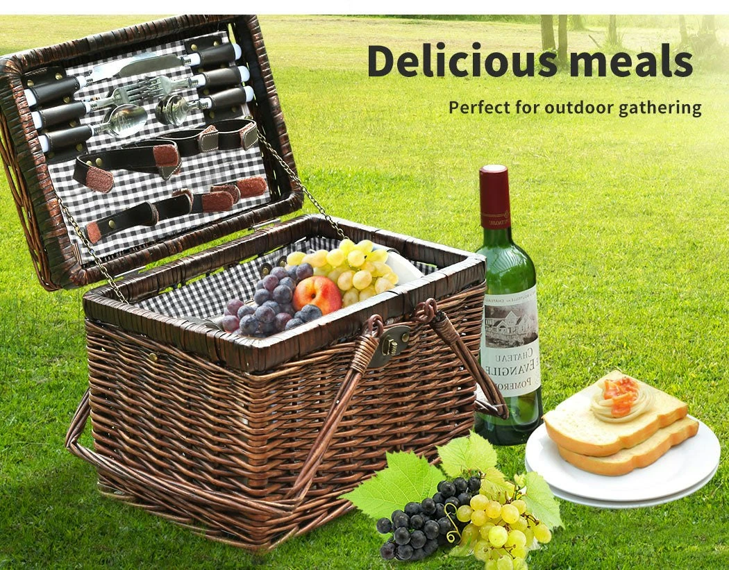 Traderight Group 4 Person Picnic Basket Set Outdoor Baskets Deluxe Willow Gift Storage Carry Trip
