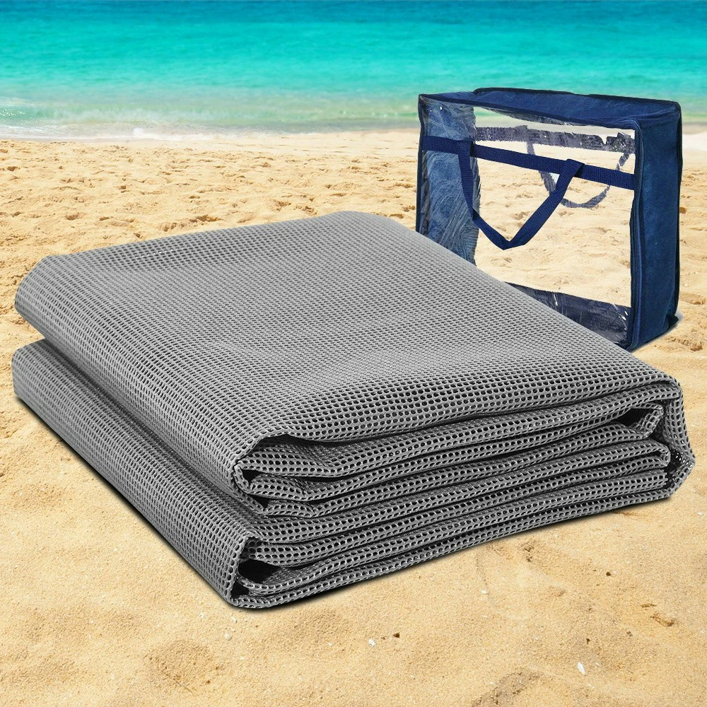 4M X 2.5M Annex Matting Have matting will travel. Indeed, our Annex Matting makes for a great travelling and camping companion where extra ground needs to be covered (quite literally). Made from foamed PVC that is soft, porous and breathable, the Annex Matting is permitted for use in caravan parks and more. Its also ideal for laying on grass, stone or rough surfaces to create a comfortable sitting and lying area. Thanks in part to the rubber-like feel of the mesh matting that is also non-slip and lays weighted down without the need for pegs or tie-downs. The matting is also UV-treated and mould and mildew-resistant. And when all is done, fold the heavy-duty Annex Matting into an easy carry-on bag for your next road trip destination. Happy trails, people! Features Heavy-duty UV treated Porous and breathable Mould and mildew resistant Caravan parks permissible Non slip Bonus carry bag Specifications: Material: 450gsm foamed PVC Dimensions: 4m x 2.5m Colour: Grey Package Content (1) Annex Matting x1 (2) Carry Bag