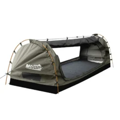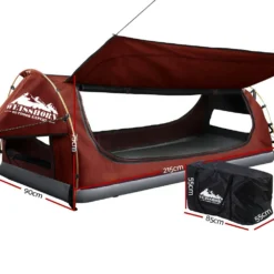 Camping and enjoying the great outdoors is no fun when your tent isnt holding up the way it should be. Think of those nights when it is just too hot, too wet, or too cold. When the creepy crawlies and flying insects have made themselves at home in your shelter. That is why you need our ever-reliable free-standing Weisshorn King Single Swag. A 14oz 400gsm water-repellent Ripstop canvas cover, 500gsm PVC waterproof flooring and an extra 10cm high edge all round. Swag speak for the ultimate tear-resistant waterproofing. Fully enclosed for privacy with zipped openings for fresh air anytime. Mesh panels to keep insects out. A 40mm high density foam mattress for better sleep on any surface. Pre-curved Aluminium poles structure design support to hold up the entire set up. And as a bonus, you get pegs and guide ropes, carry bag and all the extras that make your camping experience unforgettable. For all the right reasons of course! Get your Weisshorn Swag today. Features 14oz 400GSM water repellent ripstop canvas 500GSM PVC waterproof floor 10cm extra high floor edge prevents dew leak in Pre-curved 7001-6T aluminium poles UV resistant – reduces heat accumulation Heavy duty zips Top flap and mesh can be fully zipped down Breathable inner fabric Mesh door for better ventilation Mesh panels for insect protection Sky demo mesh for full scenery 420D oxford PVC coating carry bag Comes with pegs and guide ropes Easy to set up Specifications: Cover: 400gsm Riptop canvas Flooring: 500gsm PVC Base dimension: 215 x 95cm Mattress thickness: approx. 40mm Floor thickness: 10cm Height: 70cm (Maximum), 40cm (Minimum) Carry bag dimension: 85 x 40 x 40cm Colour: Dark grey Package Content Weisshorn Swagx 1 Assembly Kit x1 Mattress x1 Carry Bag x1