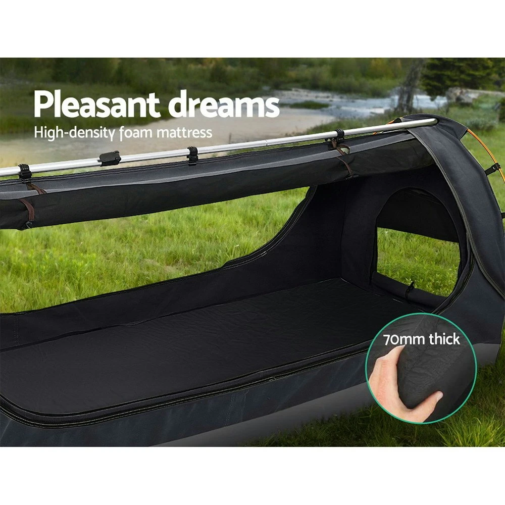 Weisshorn Double Swag Camping Swags Canvas Free Standing Dome Tent Dark Grey W/ 7CM Mattress