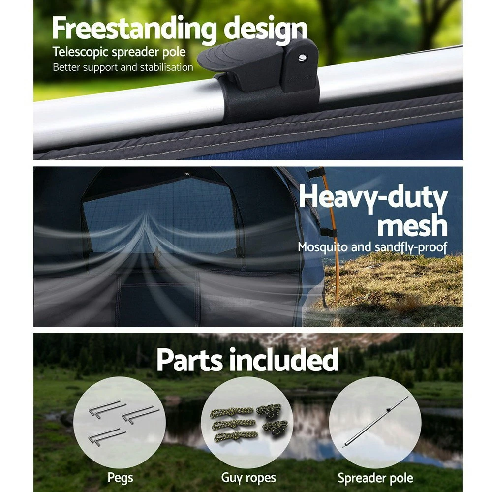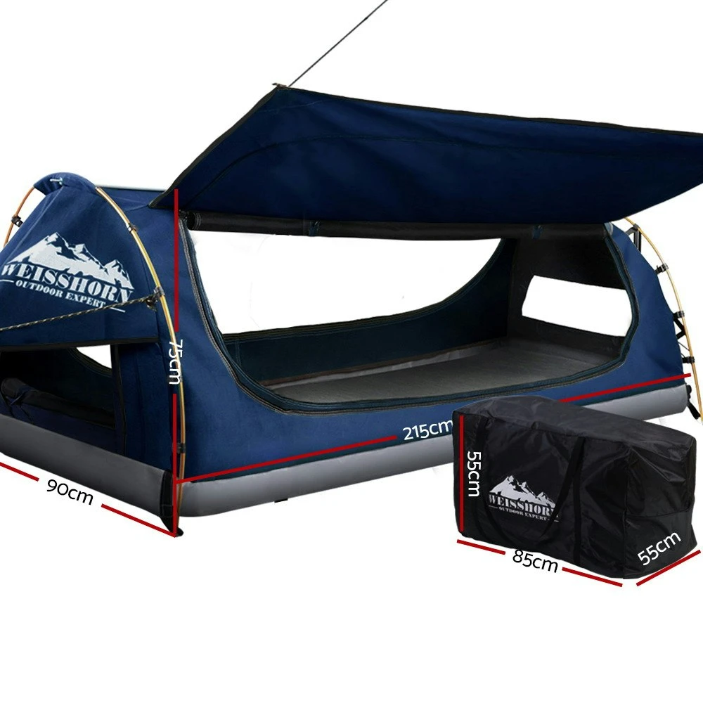 Camping and enjoying the great outdoors would not be so great if your tent is not holding up the way it should. Such as if it is just too hot, too wet and too cold. Or the creepy crawlies and flying insects are in visitation mode. That is why you need our ever-reliable free-standing Weisshorn King Single Swag.